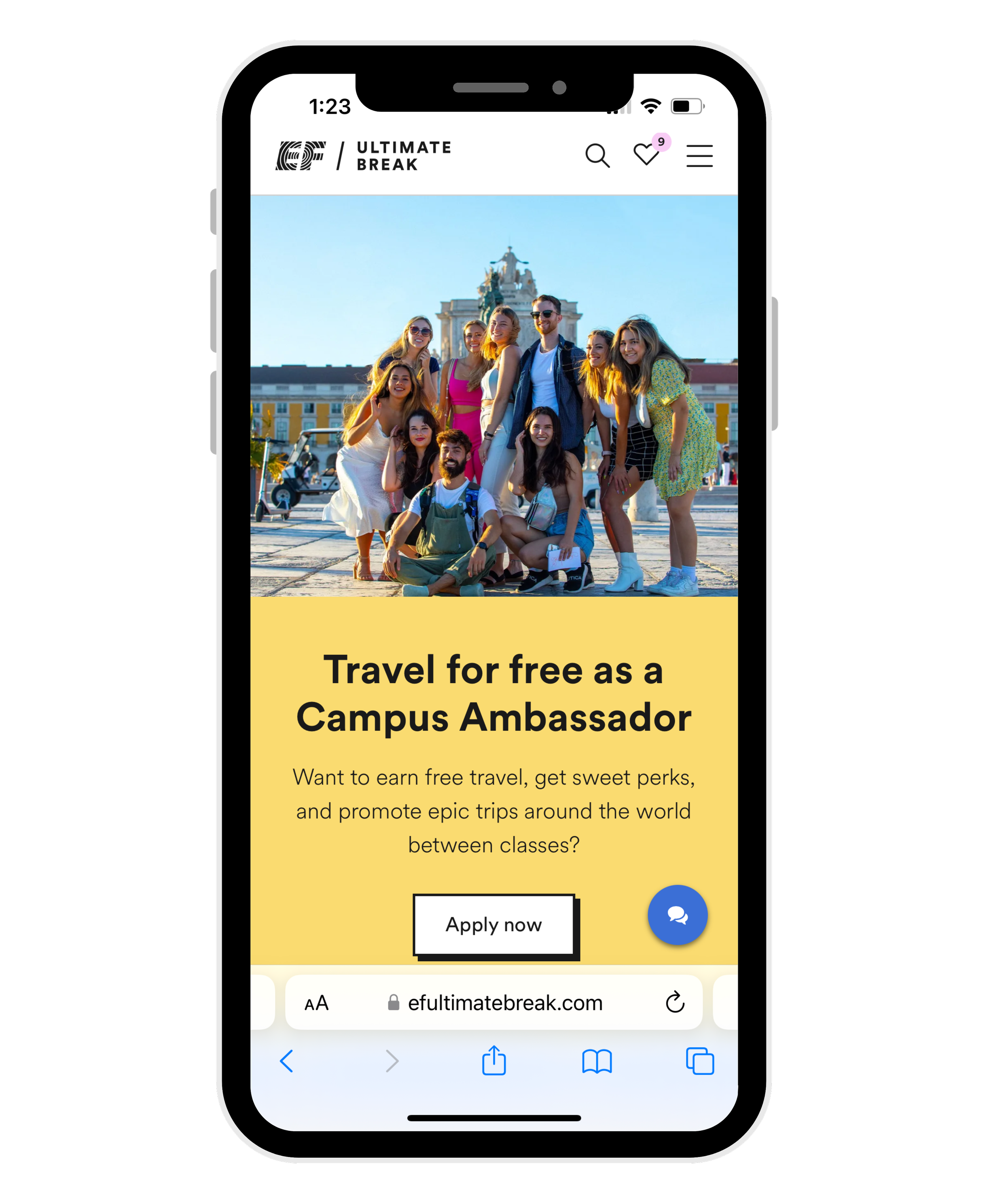 In 2022, I went on an incredible journey to Spain and Portugal for the ambassador retreat! This unforgettable experience allowed me to create some awesome content while connecting with other EF ambassadors! A highlight was definitely filming my first ever commercial for socials! It was such a surreal experience when my face popped up on an ad while I was scrolling my feed - so cool!